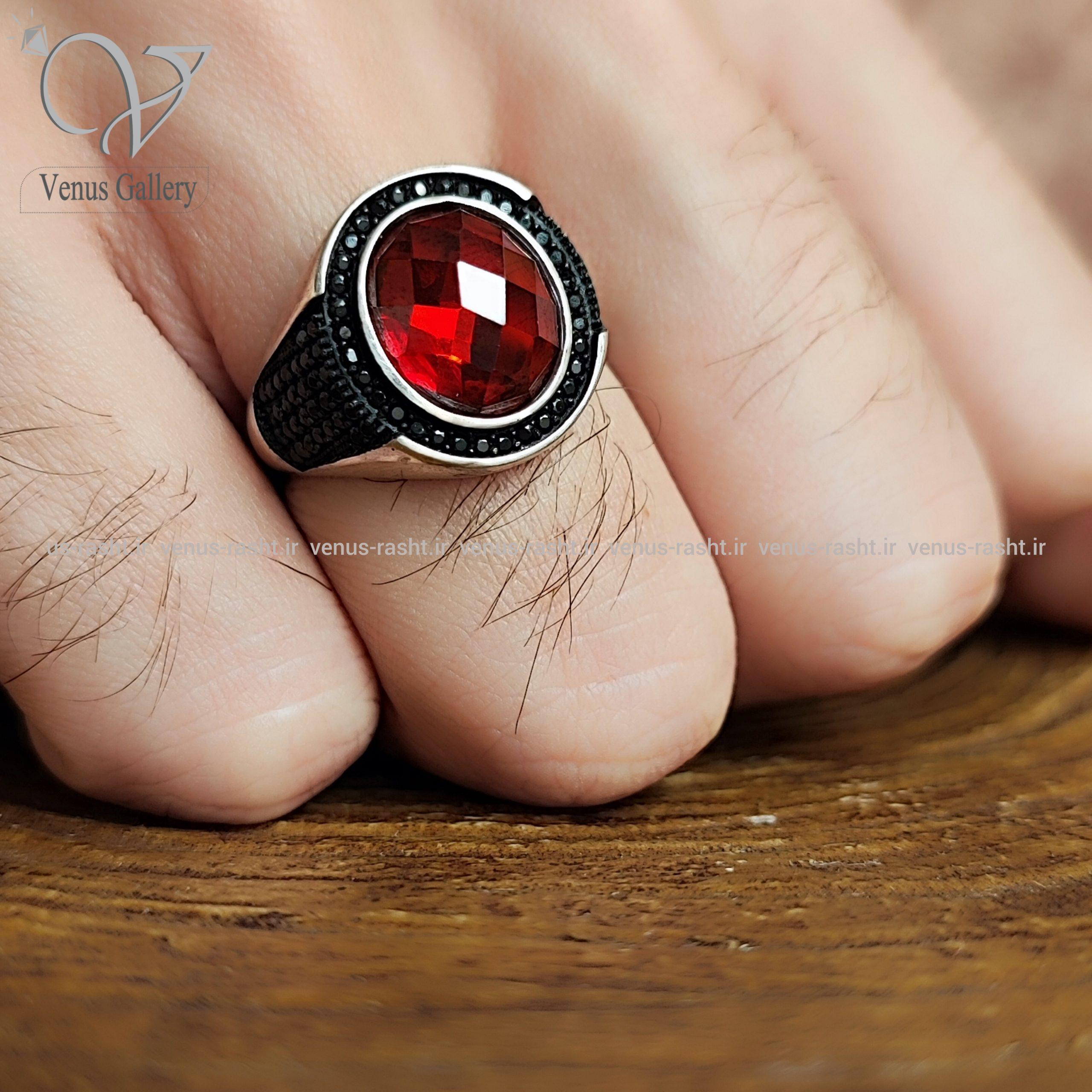 انگشتر نقره مردانه با سنگ کریستال اتمی قرمز کد 2341