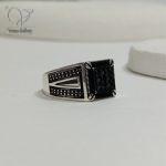 انگشتر نقره مردانه ترک با نگینهای اتمی مشکی کد8410