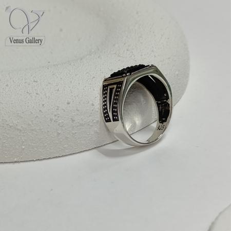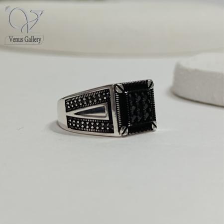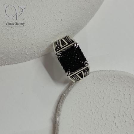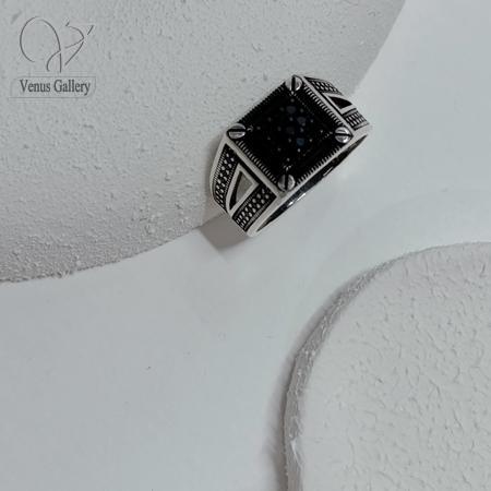انگشتر نقره مردانه ترک با نگینهای اتمی مشکی کد5316