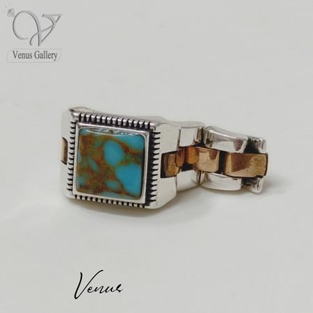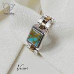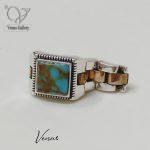 انگشتر نقره مردانه رکاب بند ساعتی رولکس سنگ فیروزه صنعتی