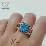 انگشتر نقره مردانه رکاب بند ساعتی رولکس سنگ فیروزه چینی کد 6086