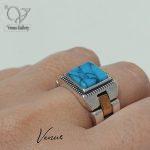 انگشتر نقره مردانه رکاب بند ساعتی رولکس سنگ فیروزه صنعتی کد 9934
