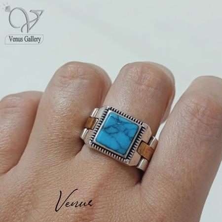انگشتر نقره مردانه رکاب بند ساعتی رولکس سنگ فیروزه چینی کد 3638