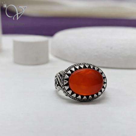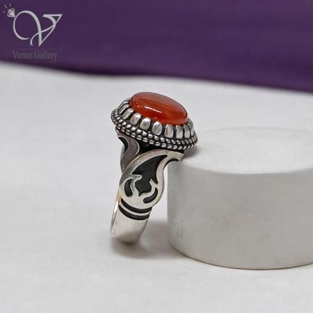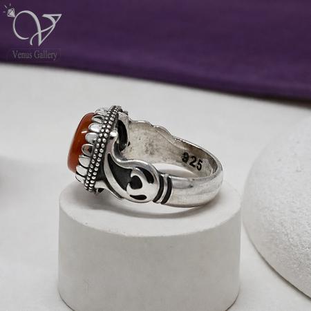 انگشتر نقره مردانه رکاب دستساز سنگ عقیق یمنی برای کسانی ساخته شده که