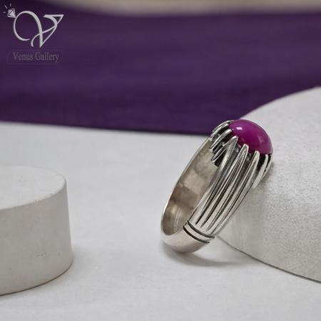 انگشتر نقره مردانه رکاب دستساز سنگ یاقوت استار اصل انتخابی حرفهای برای مردانی است که بهدنبال