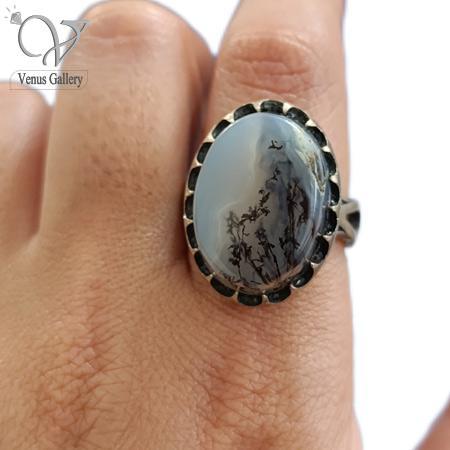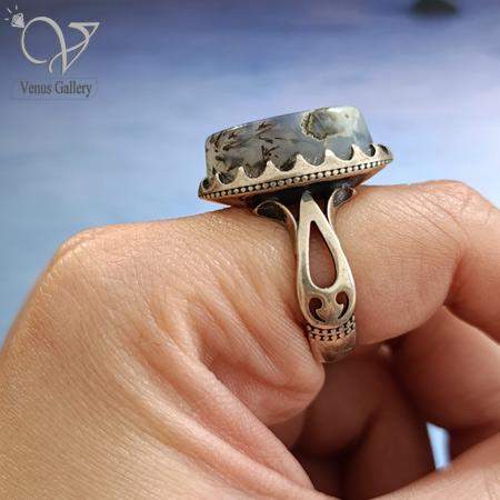 انگشتر نقره مردانه رکاب دستساز و کلکسیونی سنگ شجر اصل و فاخر کد 6102