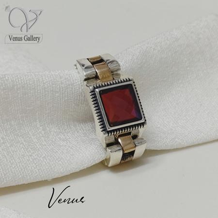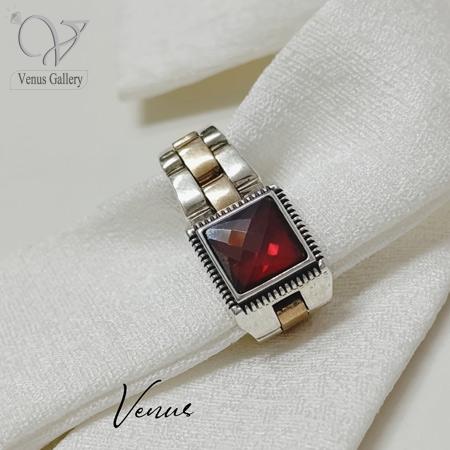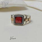انگشتر نقره مردانه رکاب یند ساعتی رولکس با سنگ سنتتیک قرمز کد9911