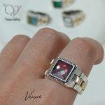 انگشتر نقره مردانه رکاب بند ساعتی رولکس با سنگ هولیت کد 9901