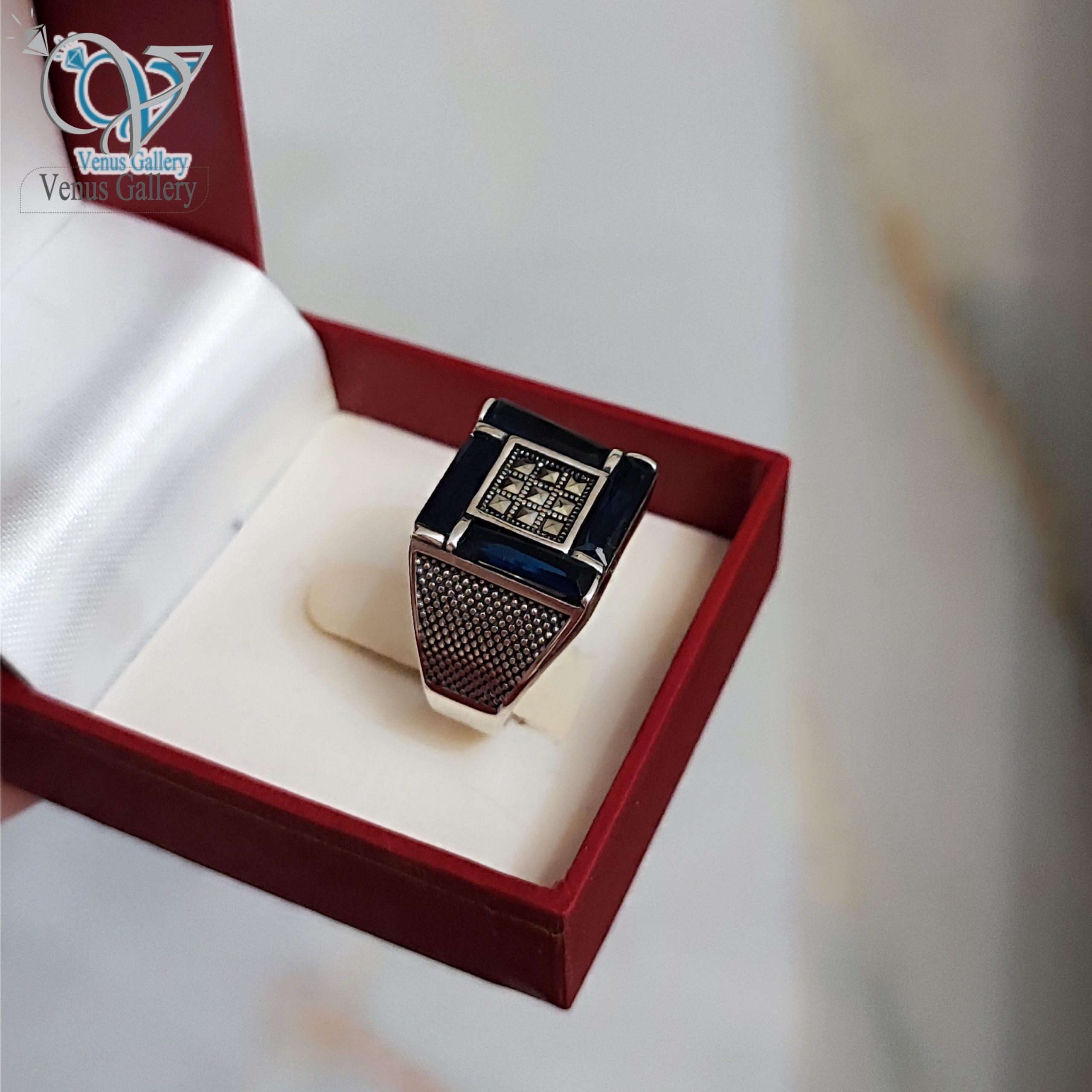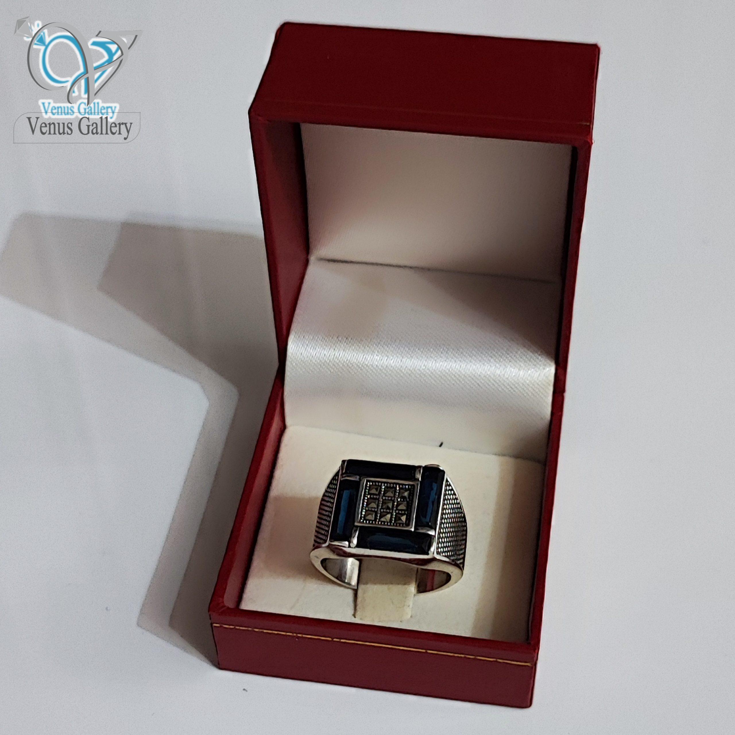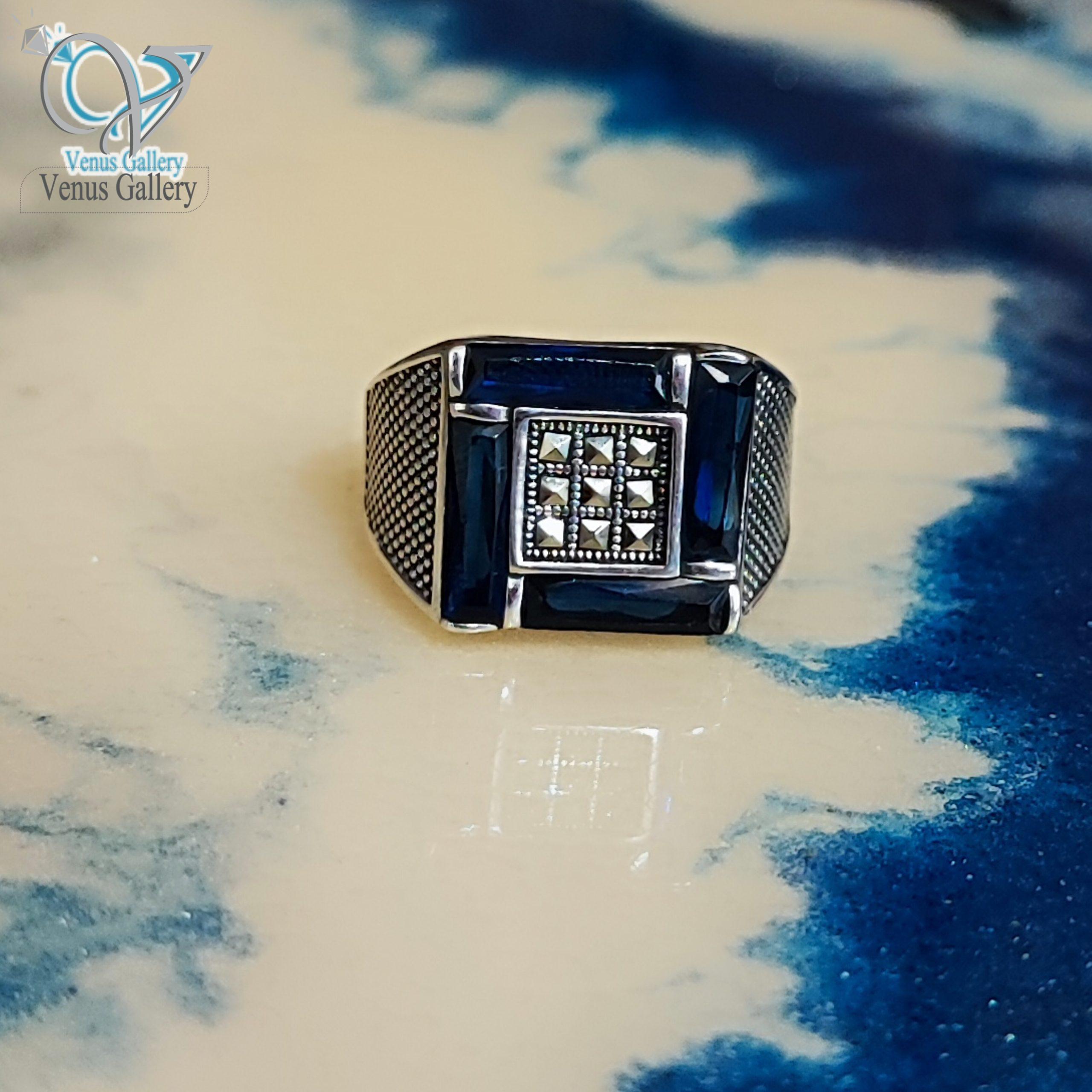 انگشتر نقره مردانه سنگ آبی نگین مارکازیت کد 2506