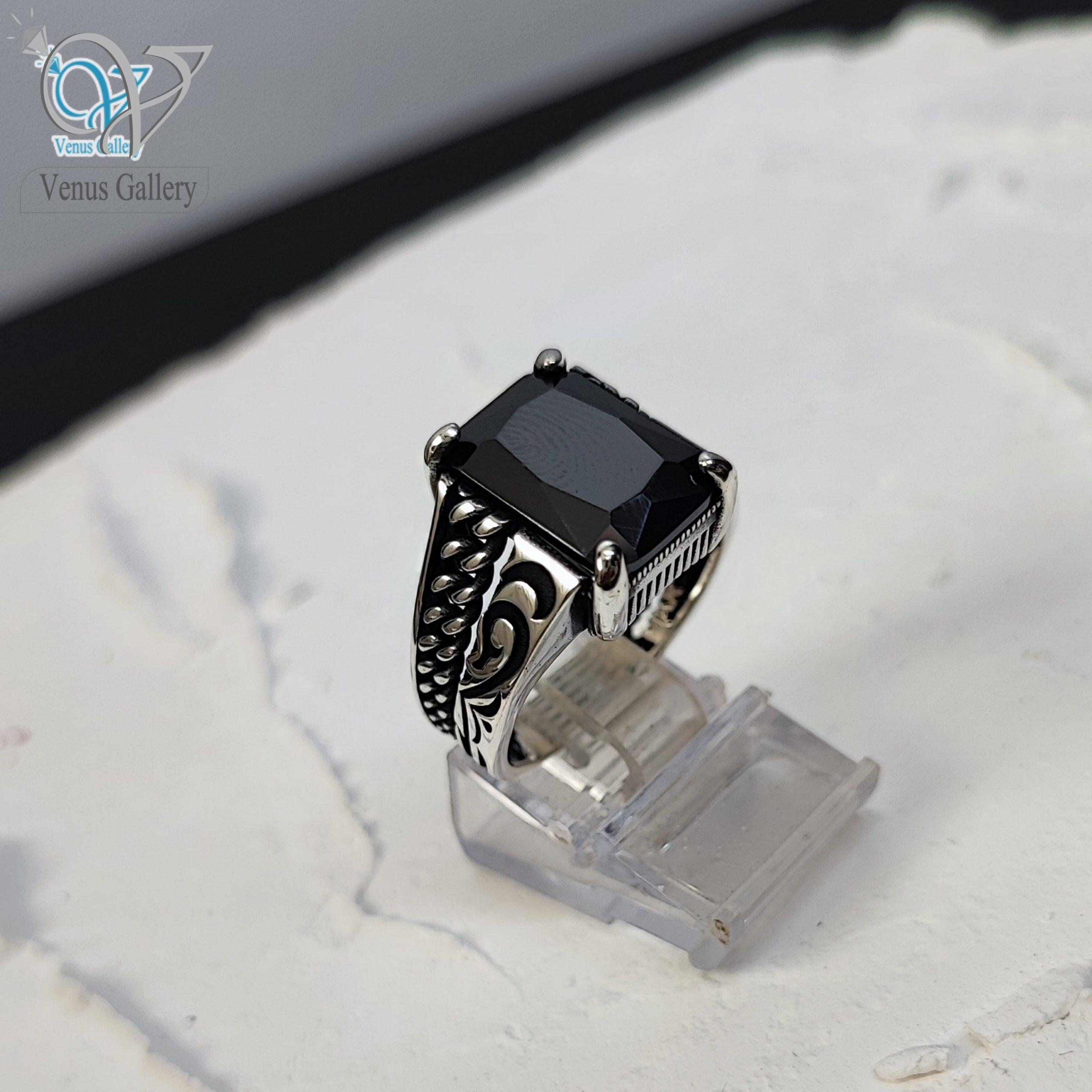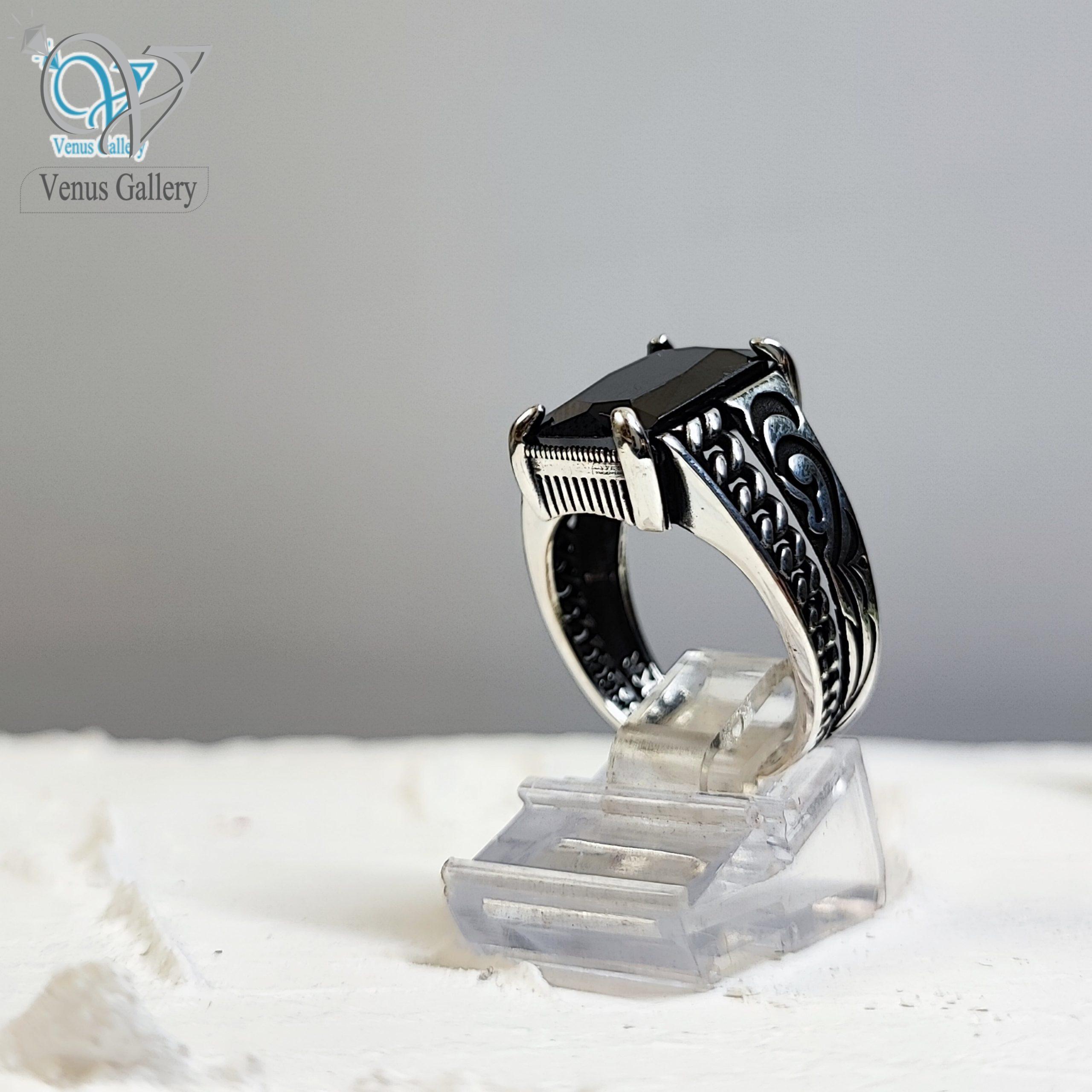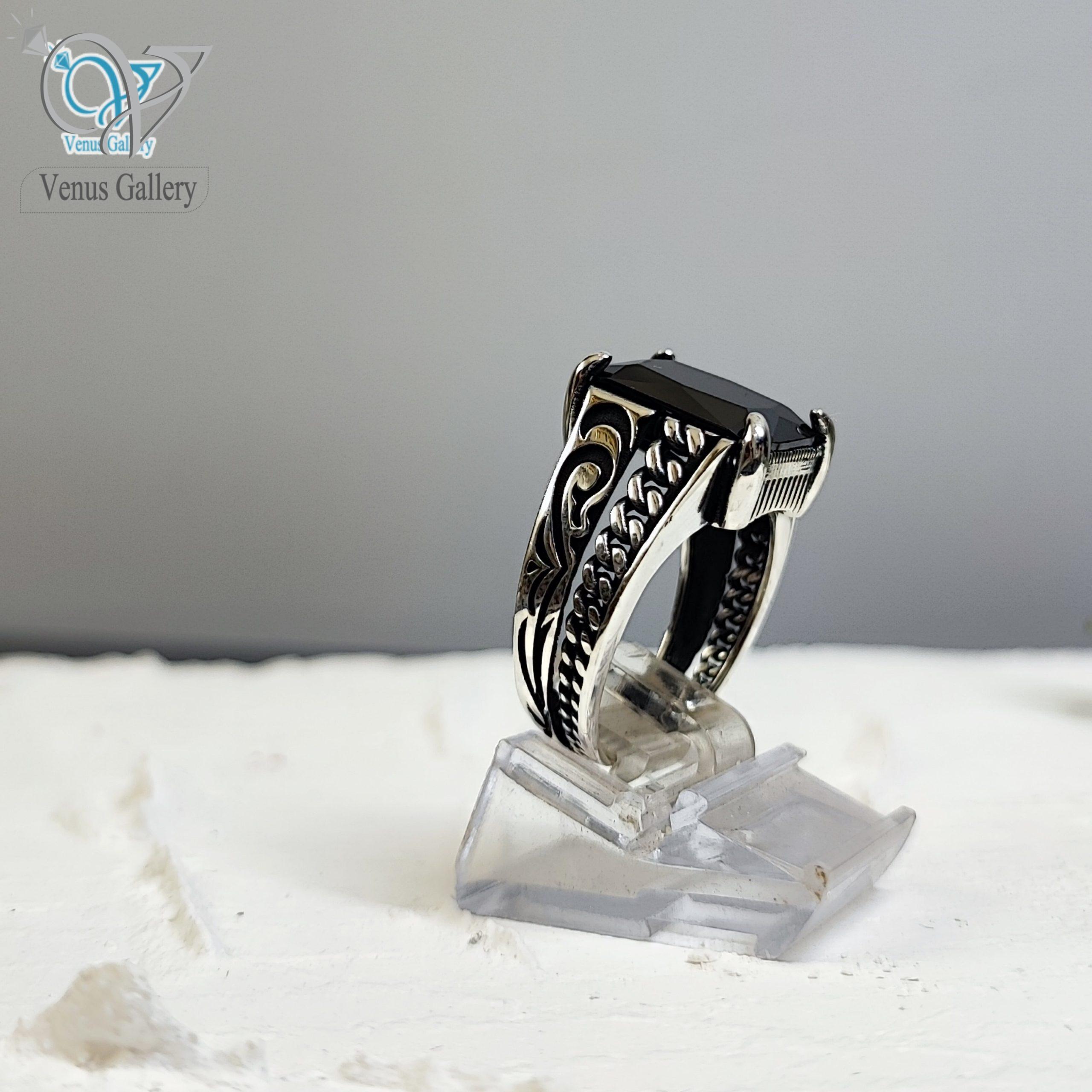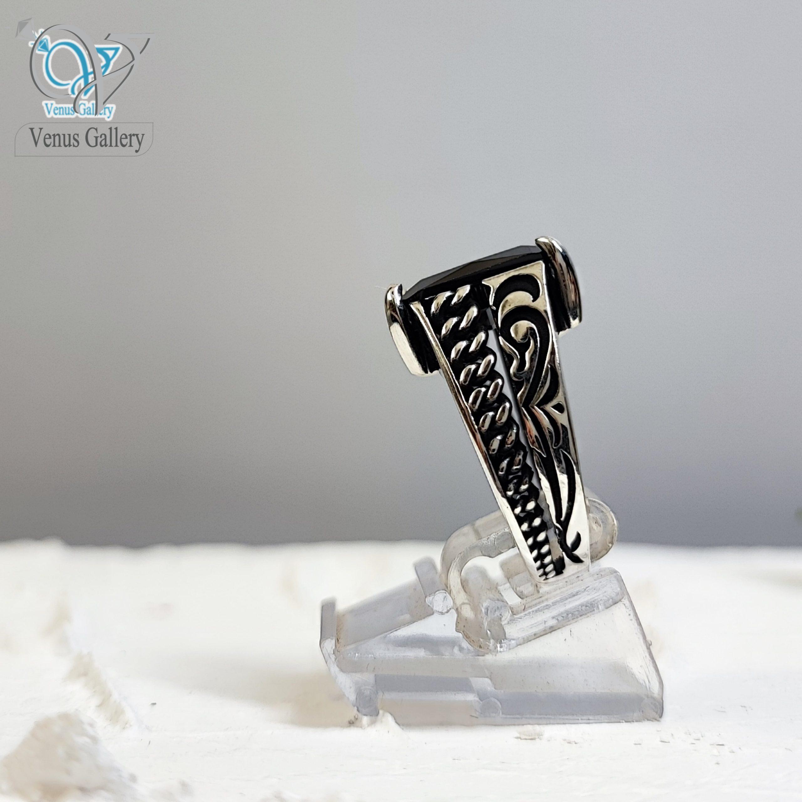 انگشتر نقره مردانه سنگ اونیکس مستطیلی مشکی