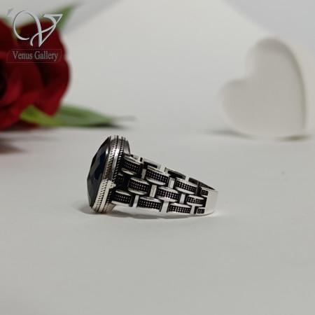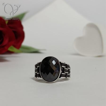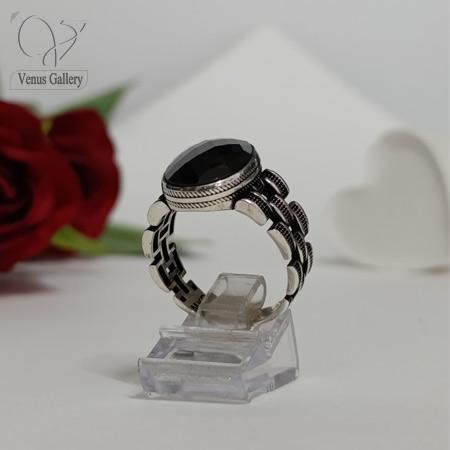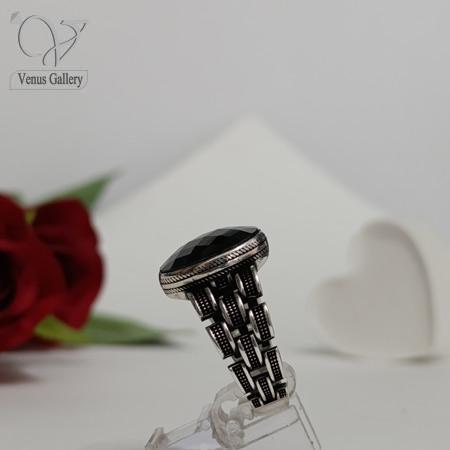 انگشتر نقره مردانه سنگ اونیکس مشکی چند وجهی بیضی ترکیه ای کد 5466