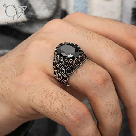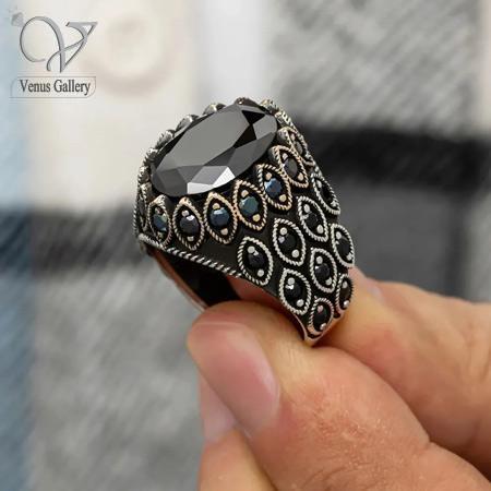 انگشتر نقره مردانه سنگ اونیکس چند وجهی بیضی بسیار شیک ترک کد 6119