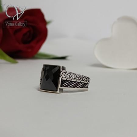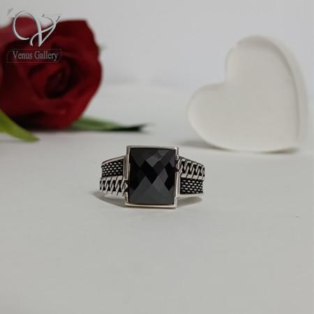 انگشتر نقره مردانه سنگ اونیکس چند وجهی مشکی مدل کارتیر کد 3616