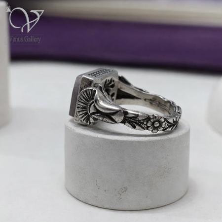 انگشتر نقره مردانه سنگ شجر اصل روی رکاب قلمزنی شده