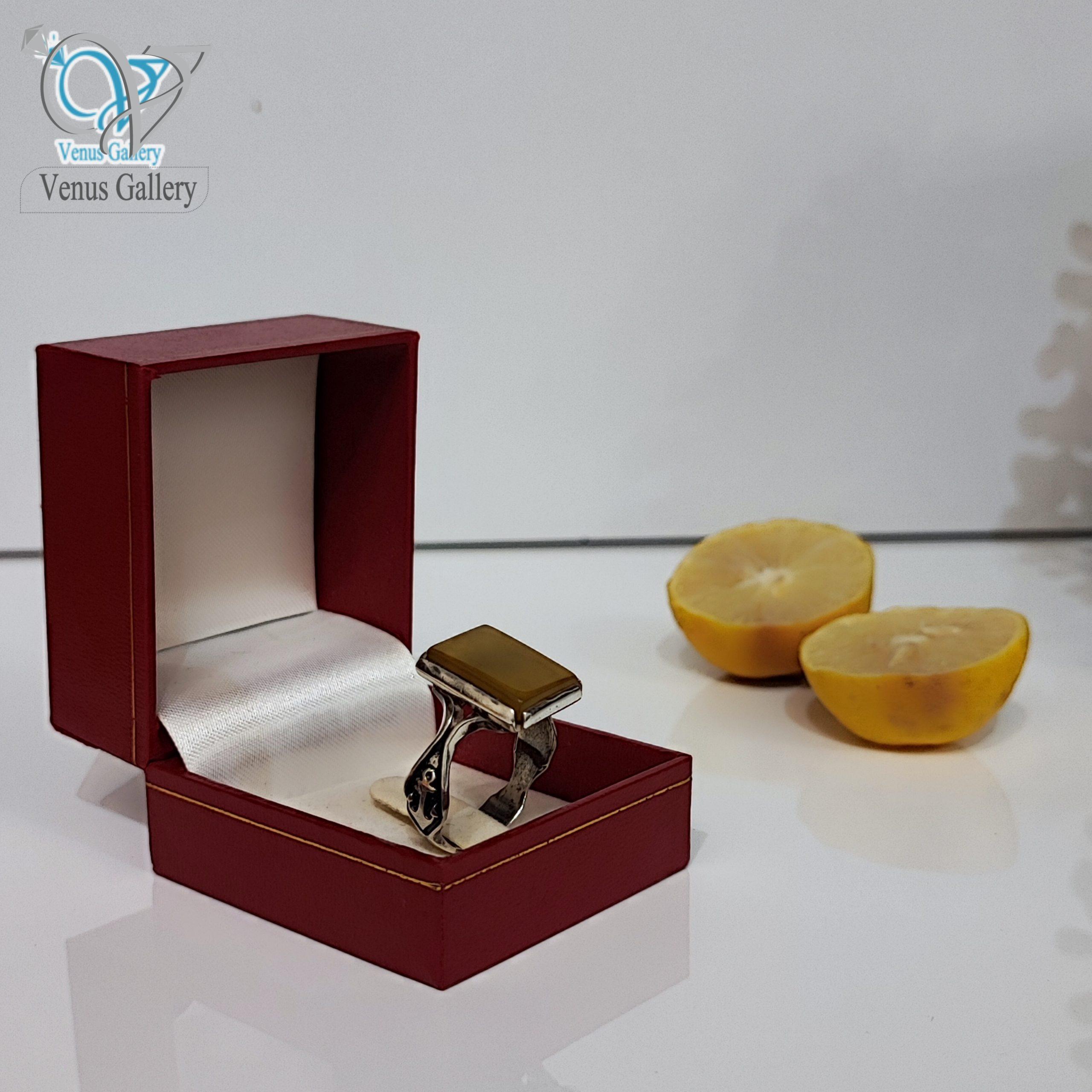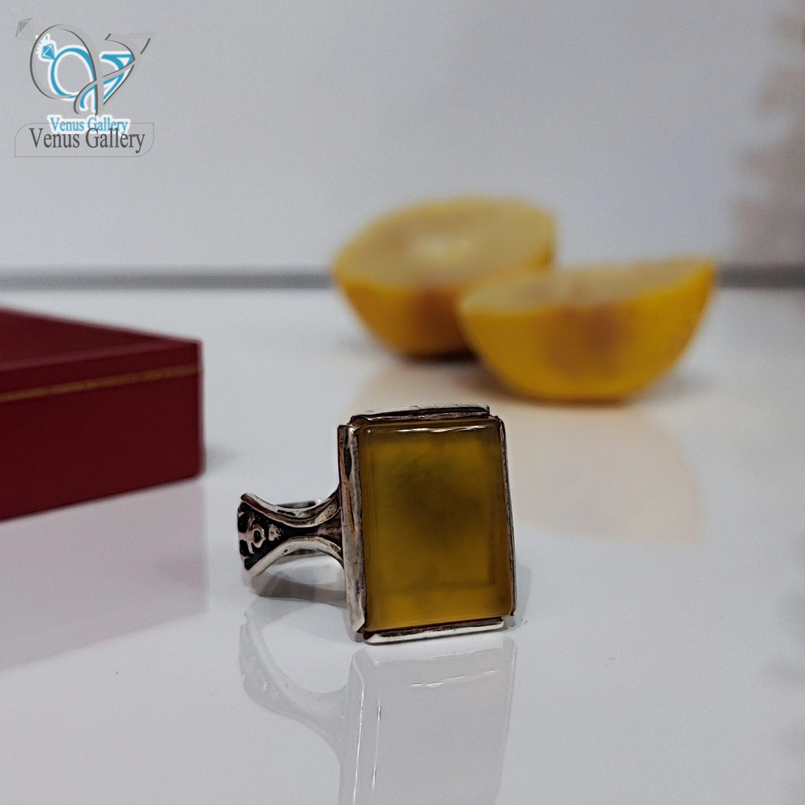 انگشتر نقره مردانه سنگ عقیق زرد شرف الشمس کد 2839