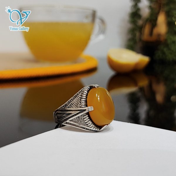 انگشتر نقره مردانه سنگ عقیق زرد کد 5502
