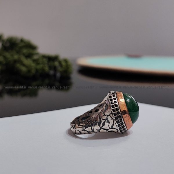 خانه زیورآلات نقره انگشتر نقره انگشتر نقره مردانه انگشتر نقره مردانه سنگ عقیق سبز