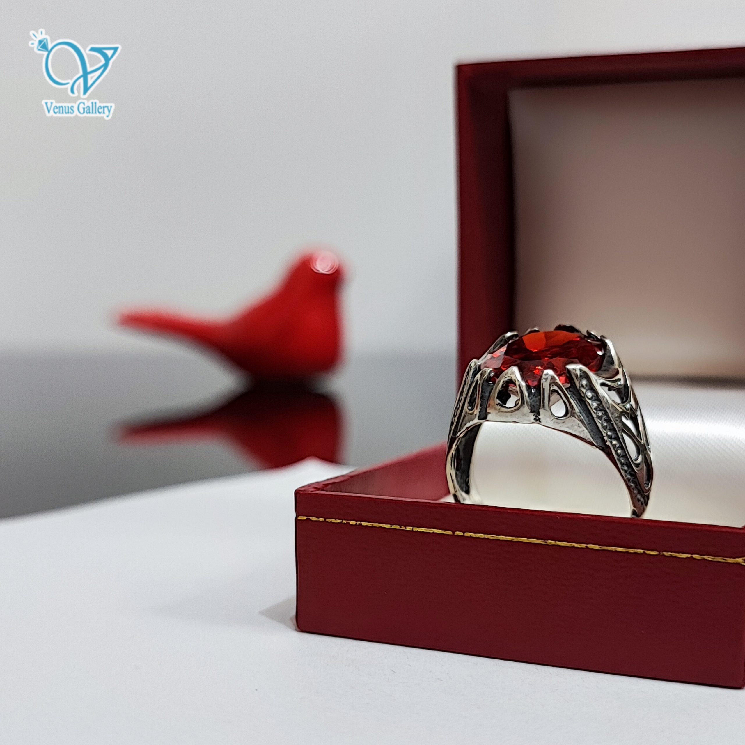 انگشتر نقره مردانه سنگ سنتتیک قرمز کد 5458