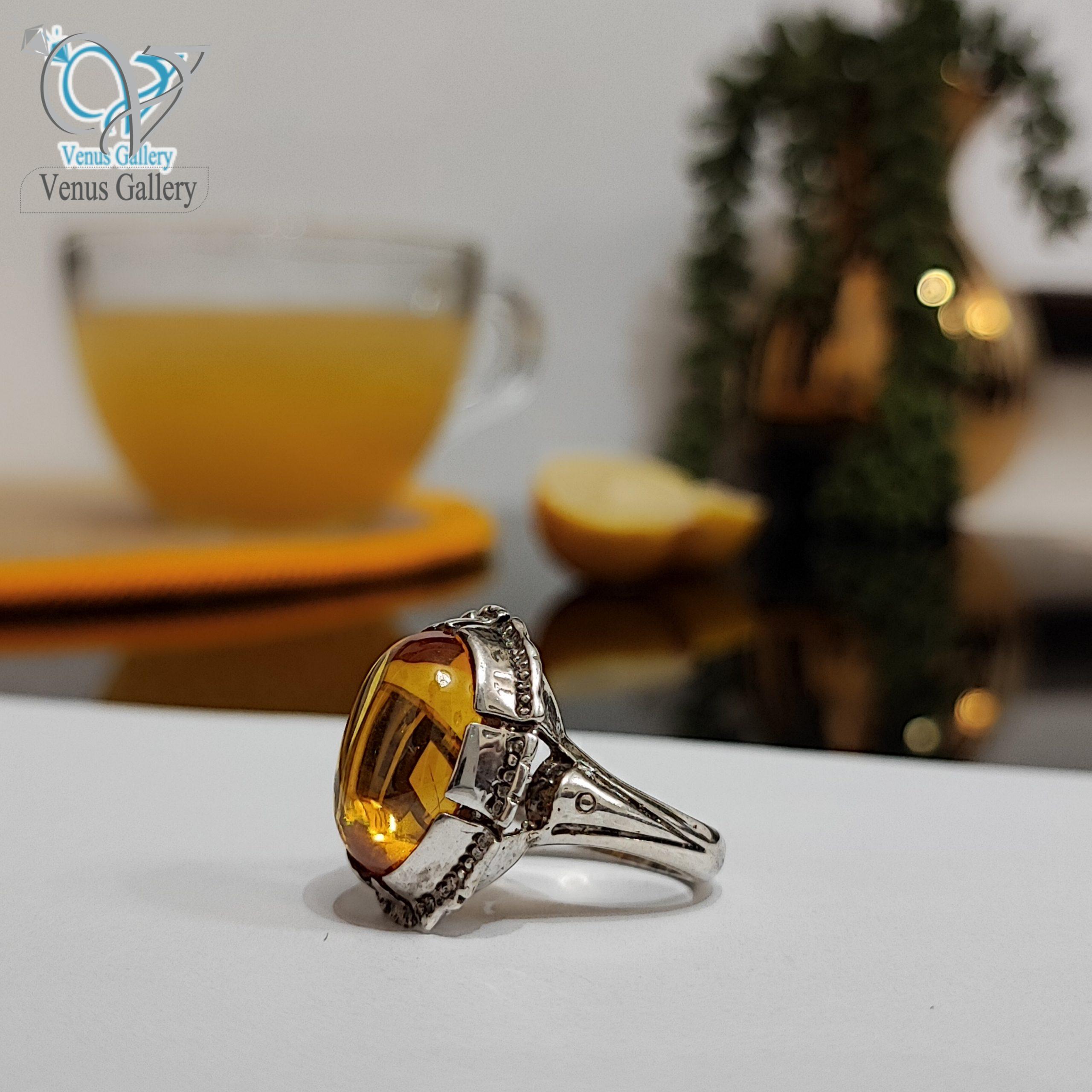 انگشتر نقره مردانه سنگ لعل زرد کد 2833