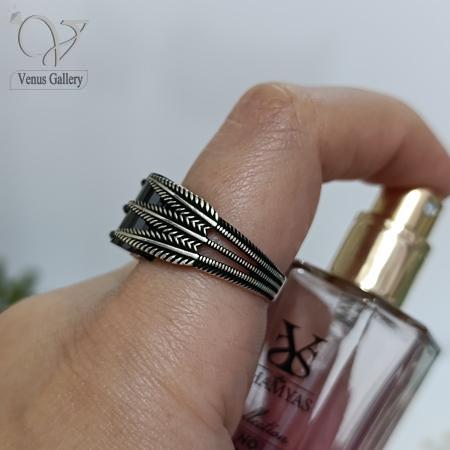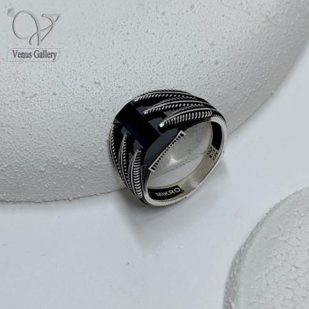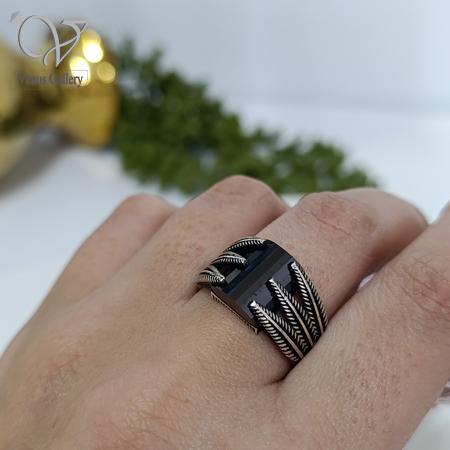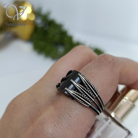 انگشتر نقره مردانه سیاه قلم ترک با سنگ اونیکس تراش طرح برگ فاخر کد8403