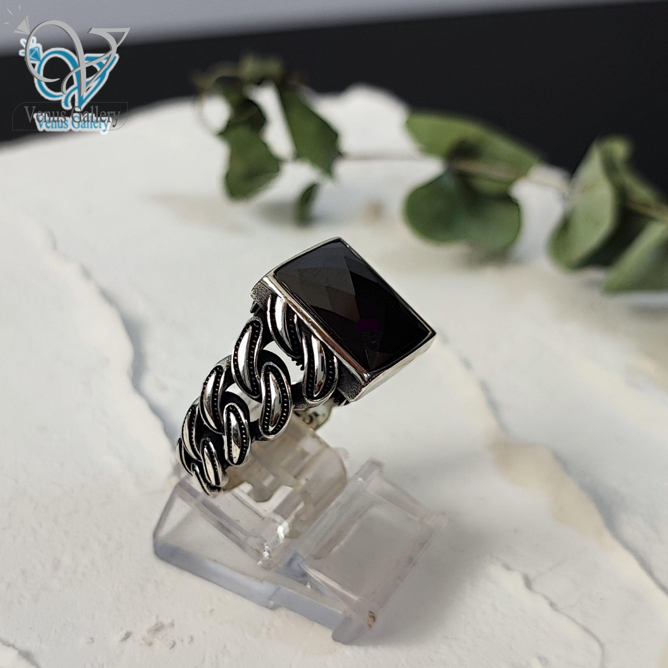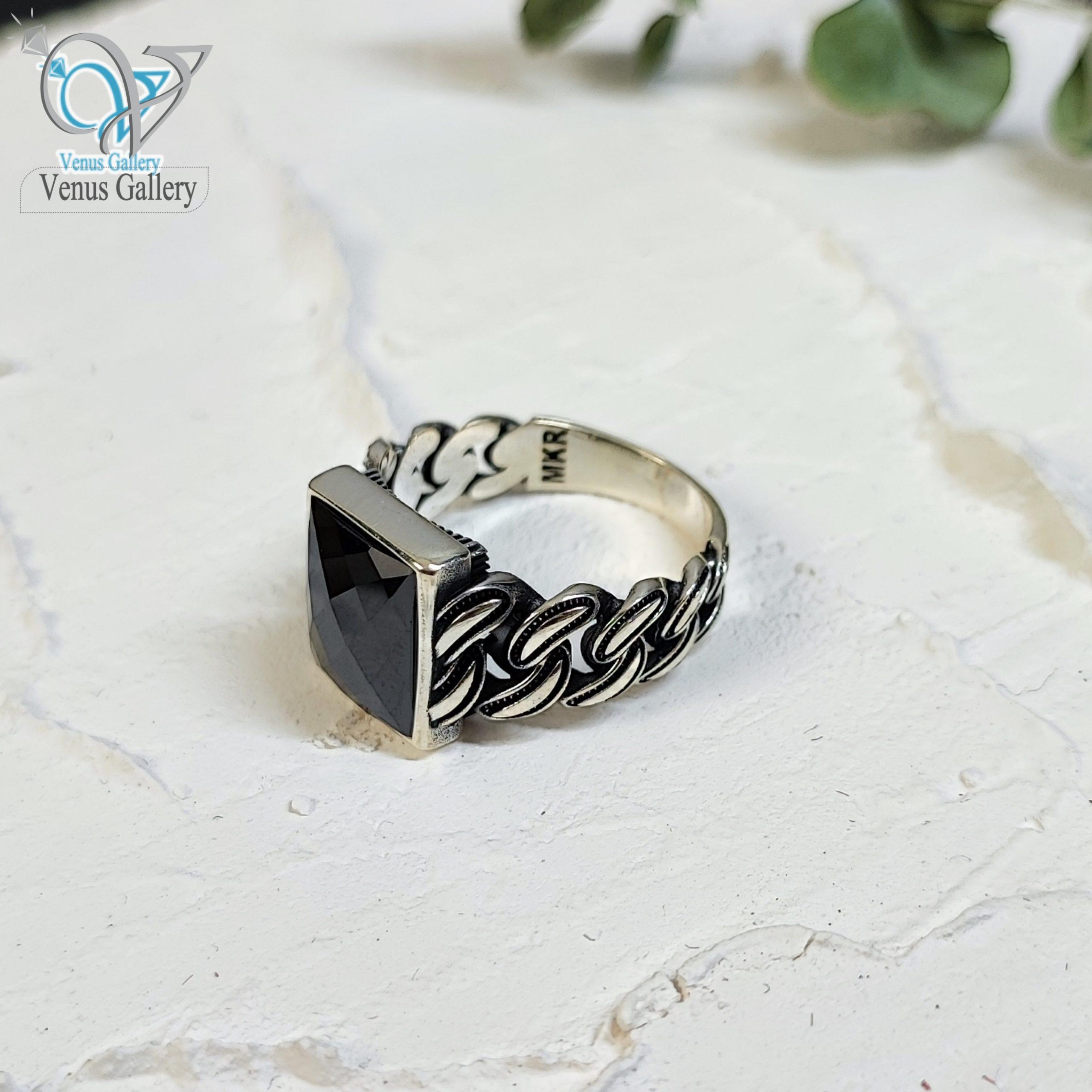 انگشتر نقره مردانه سیاه قلم رکاب کارتیه سنگ اونیکس کد6173