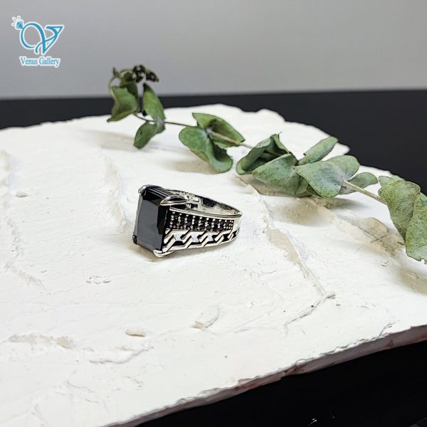 انگشتر نقره مردانه سیاه قلم وارداتی سنگ اونیکس چند وجهی مشکی