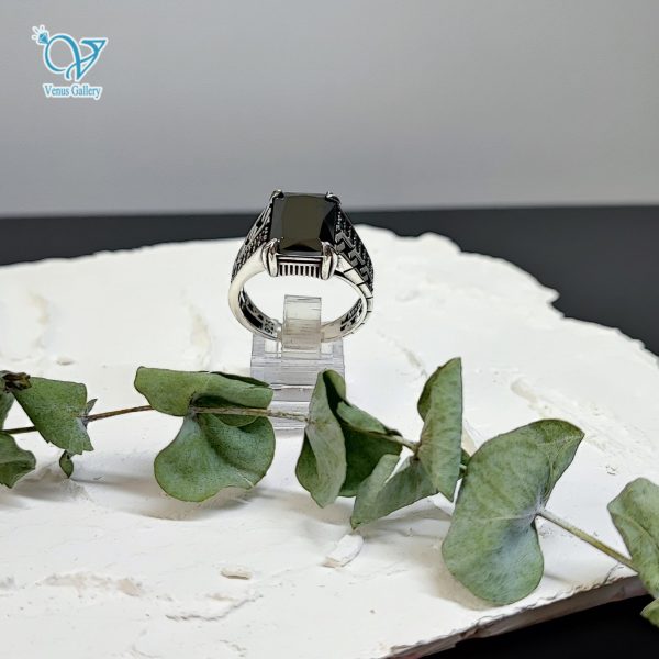 انگشتر نقره مردانه سیاه قلم نگین مارکازیت سنگ اونیکس مشکی کد 6188