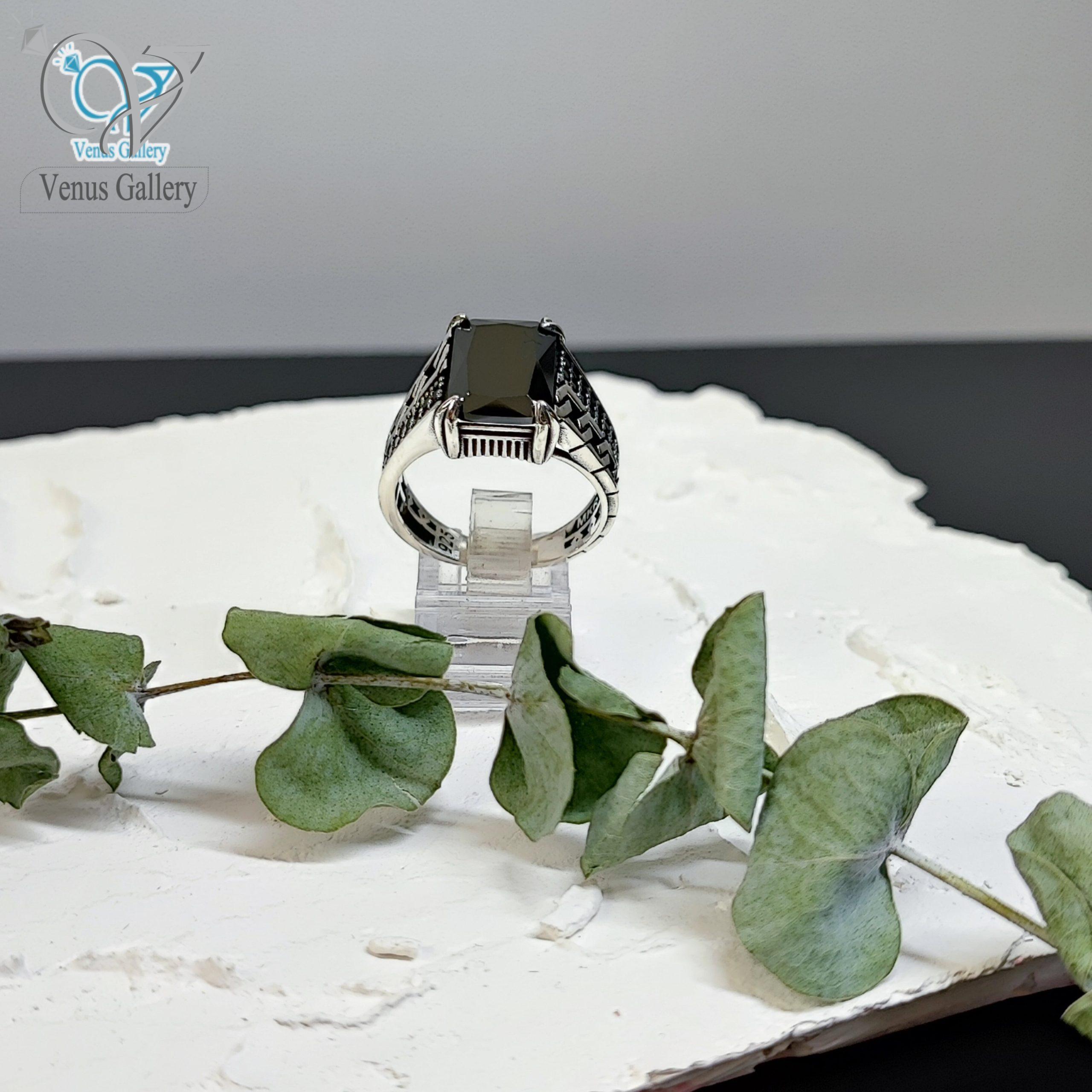 انگشتر نقره مردانه سیاه قلم وارداتی با سنگ اونیکس تراش خورده کد 6185