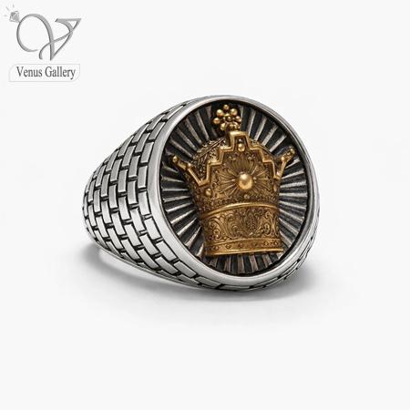 - انگشتر نقره مردانه تاج سلطنتی با رکاب رولکسی؛ انتخابی قدرتمند برای استایل مردانه خاص.