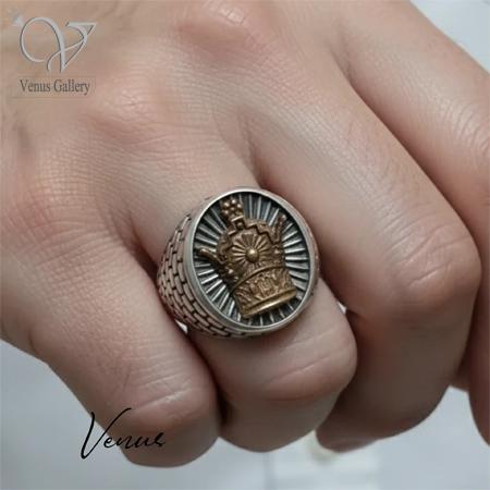 در مرکز این انگشتر نقره مردانه، نماد تاج قرار گرفته؛ سمبلی از قدرت، فرمانروایی و اعتمادبهنفس.