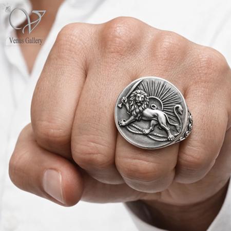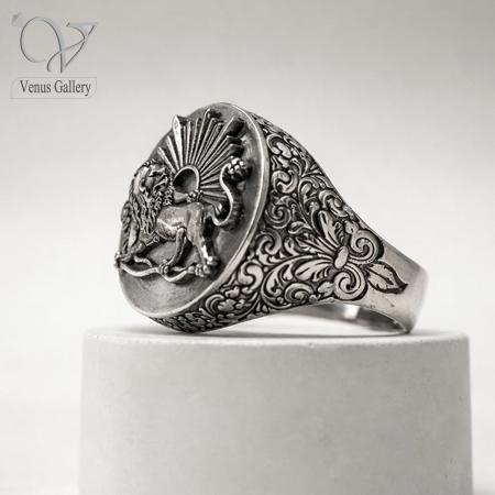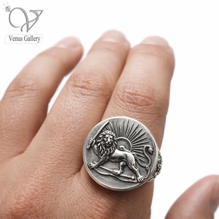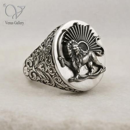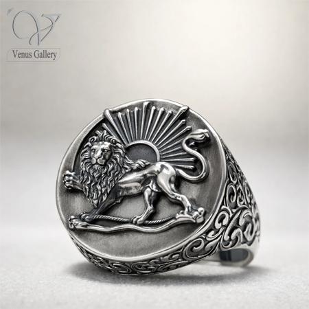 - با انگشتر نقره مردانه طرح شیروخورشید قدرت و اصالت رو همزمان روی دستت حس میکنی.