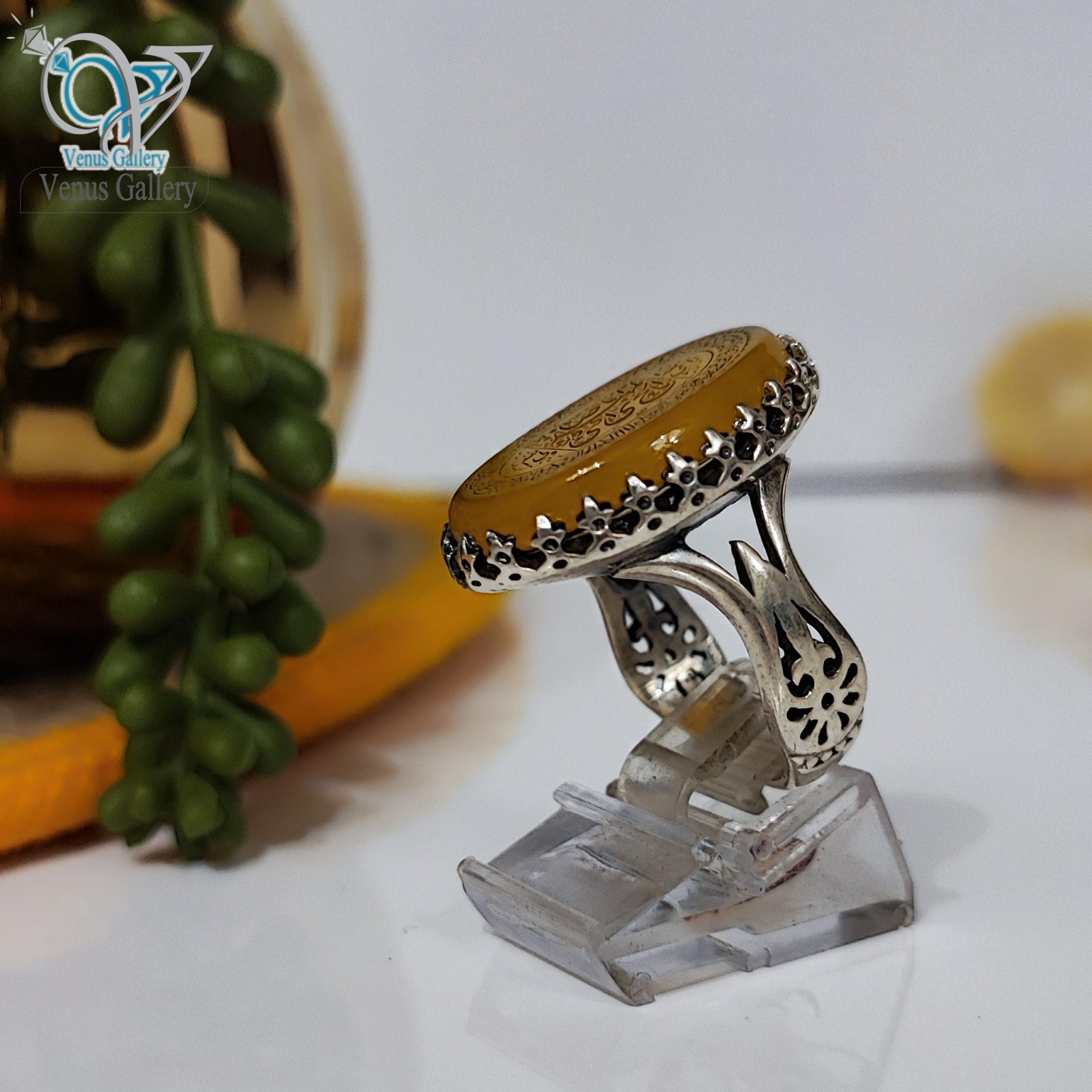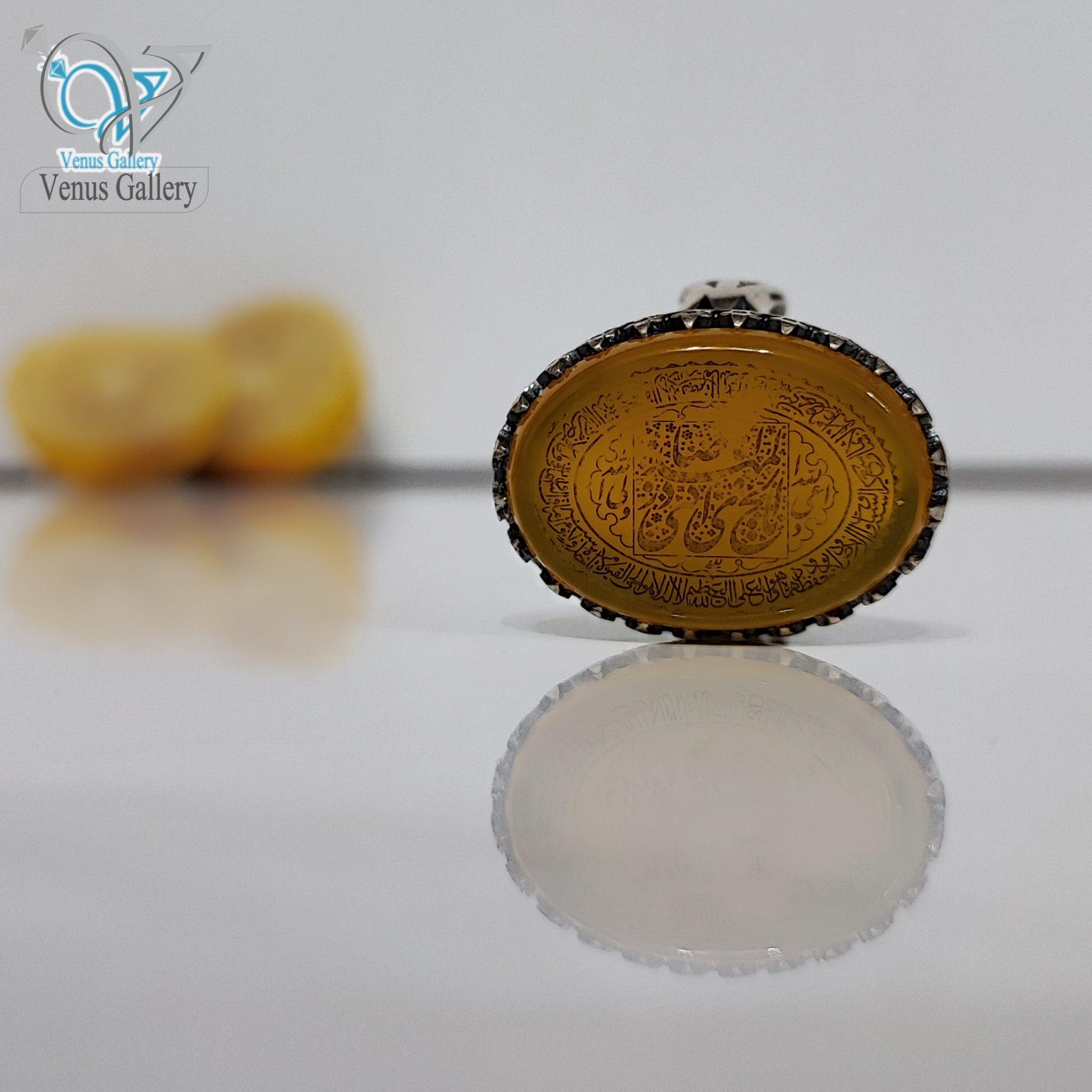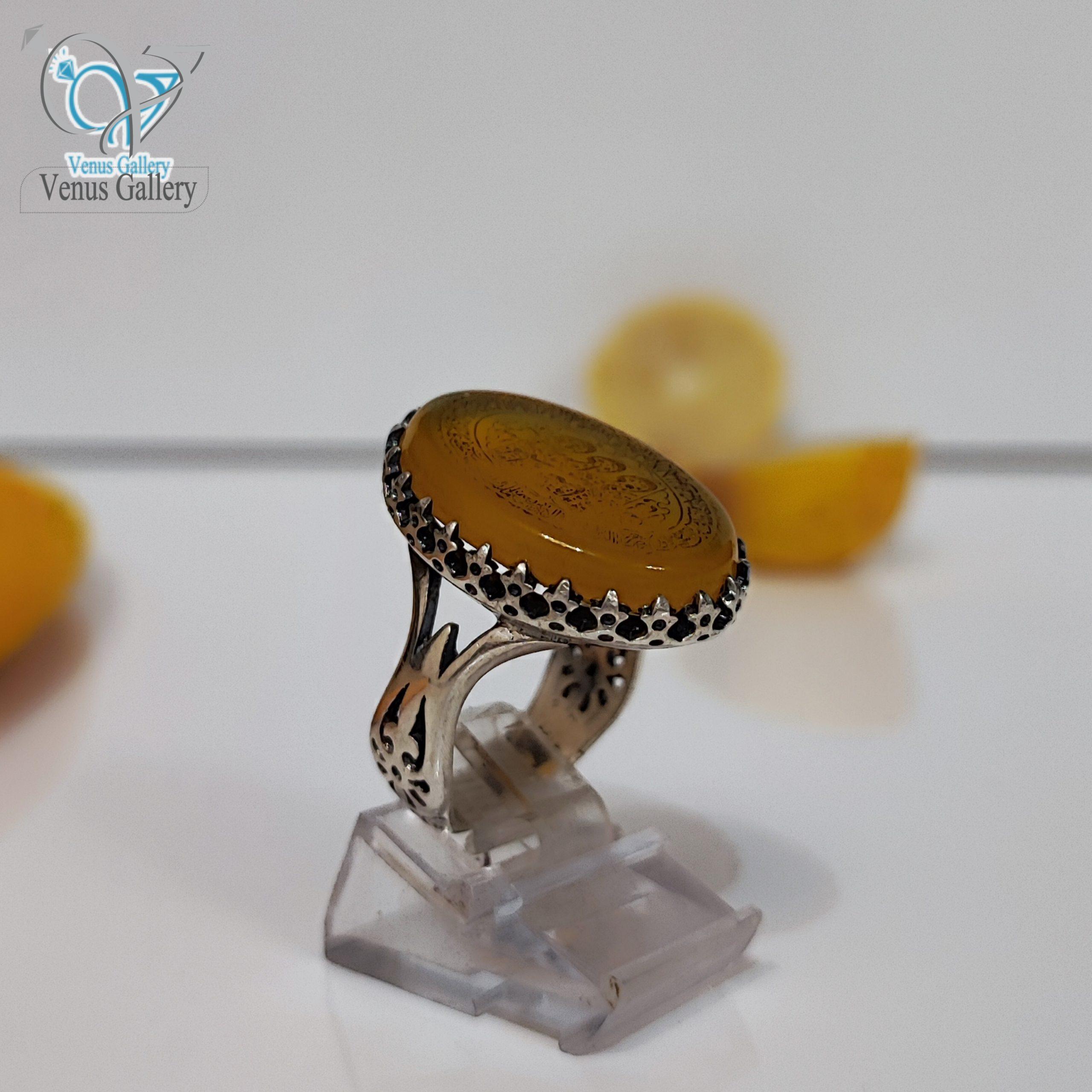 انگشتر نقره مردانه عقیق زرد حکاکی آیـت الکرسی کد 2820
