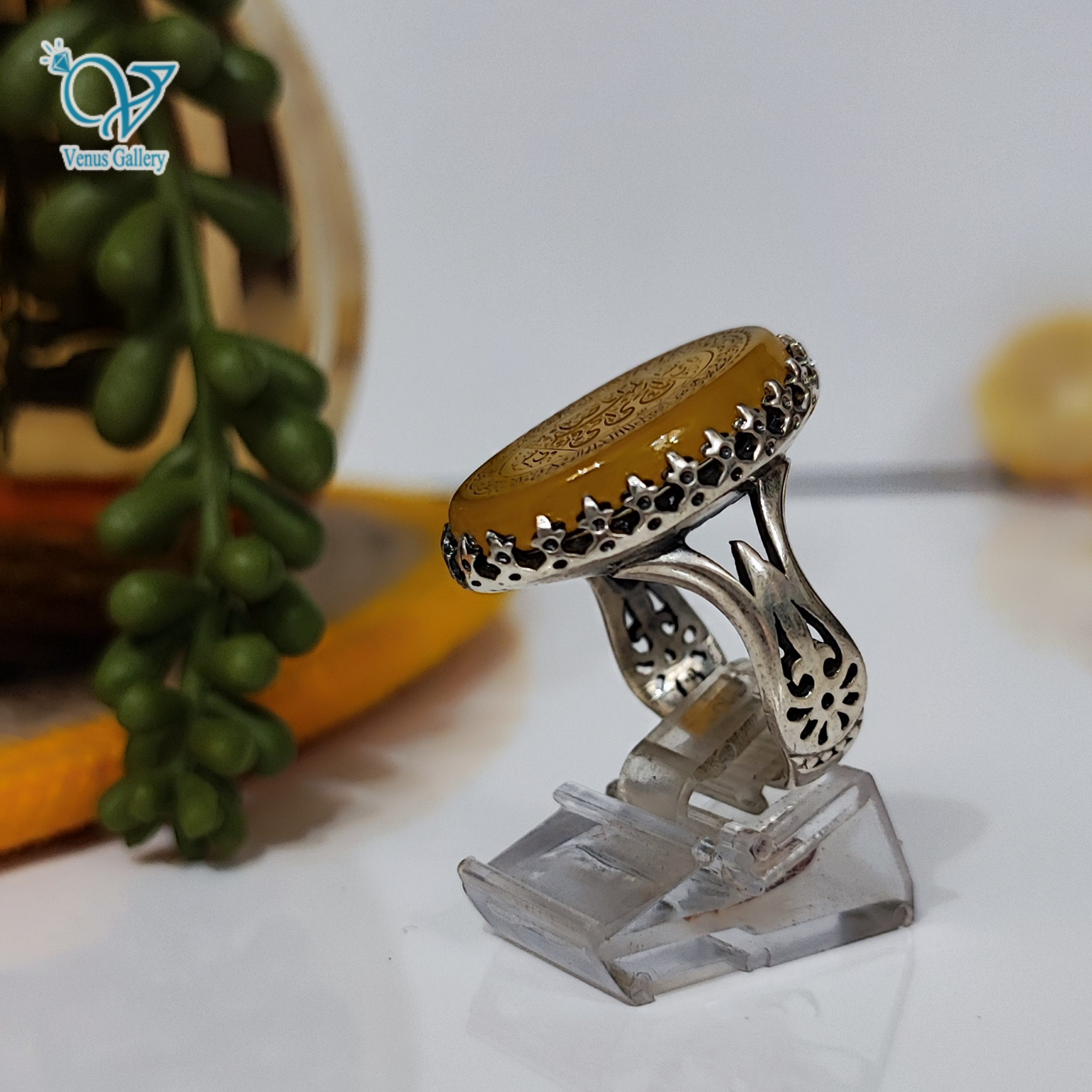 انگشتر نقره مردانه عقیق زرد حکاکی آیـه الکرسی