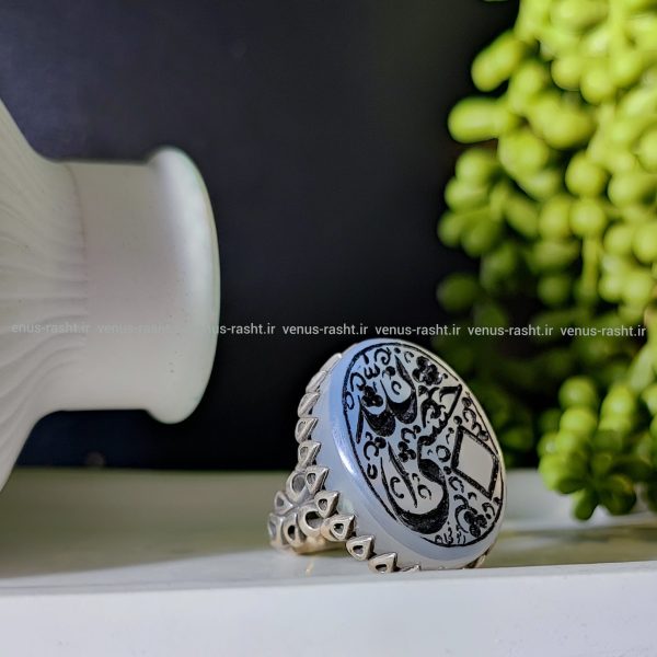 انگشتر بسیار زیبای نقره با سنگ عقیق طوسی وحکاکی حسبی الله به معنی خدا کافیست هدیه ای بسیار ارزنده برای عزیزانتان است.