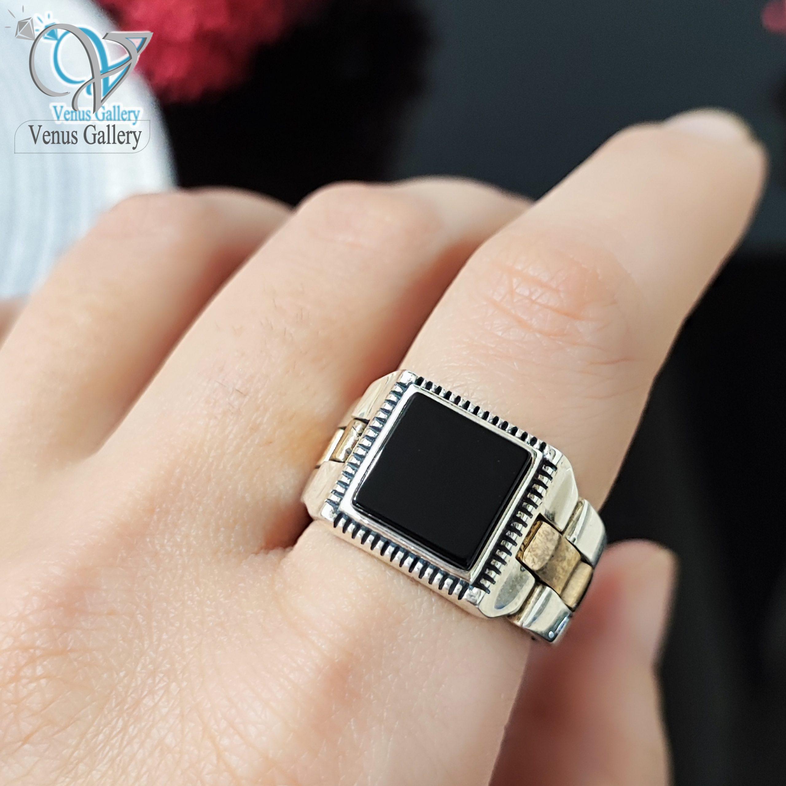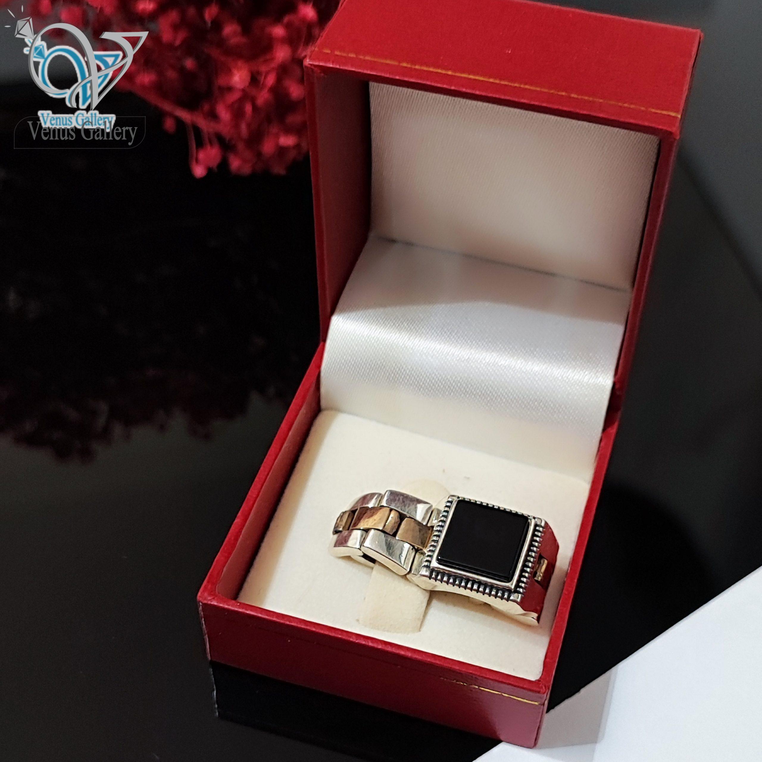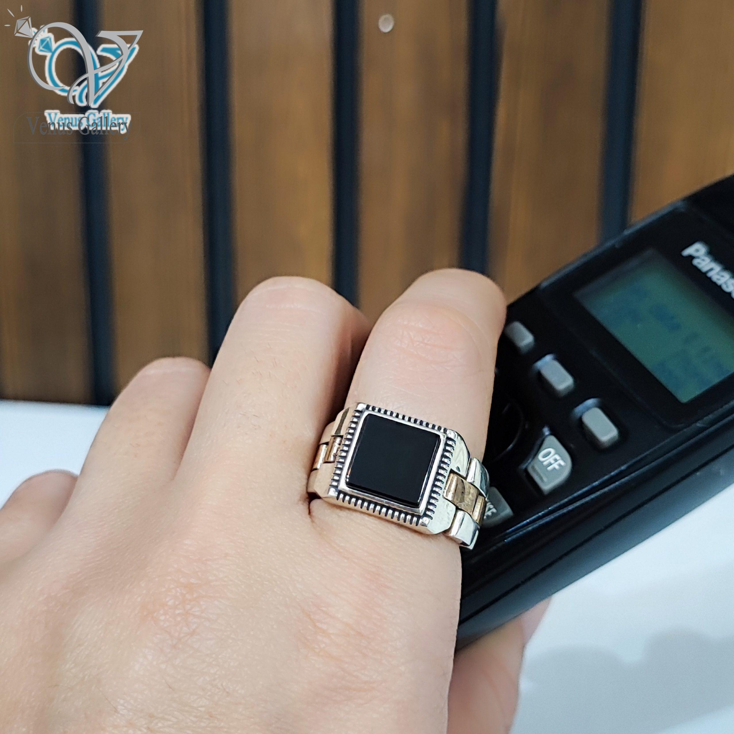 انگشتر نقره مردانه مدل رولکس بند ساعتی سنگ اونیکس کد 4781