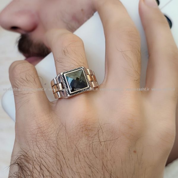 انگشتر نقره مردانه رکاب بند ساعتی رولکس با سنگ هولیت کد 9901
