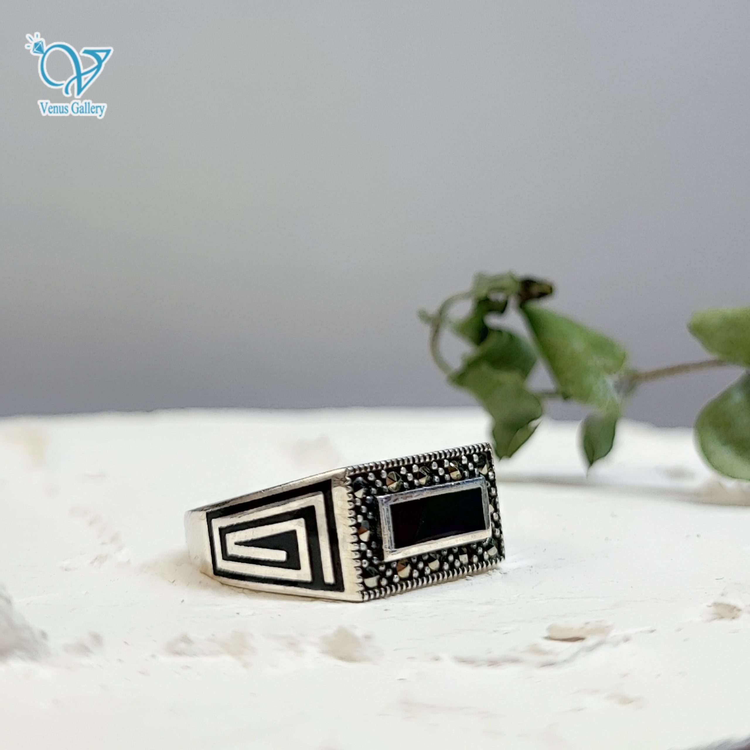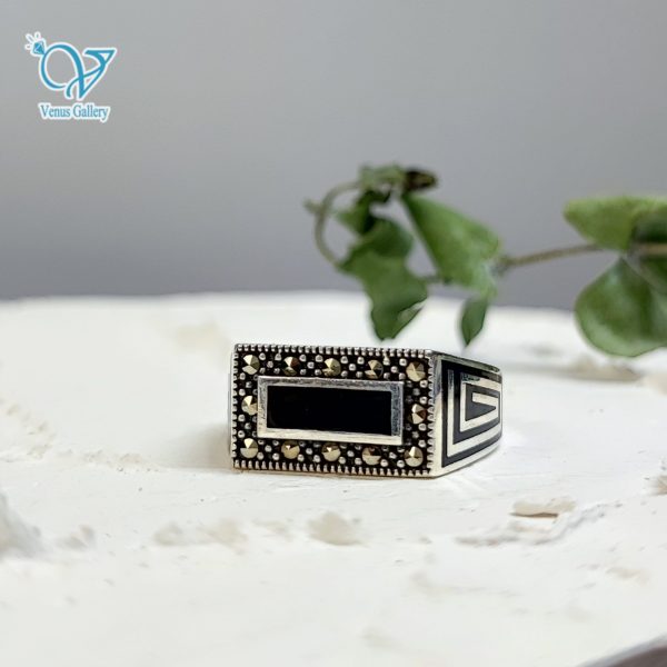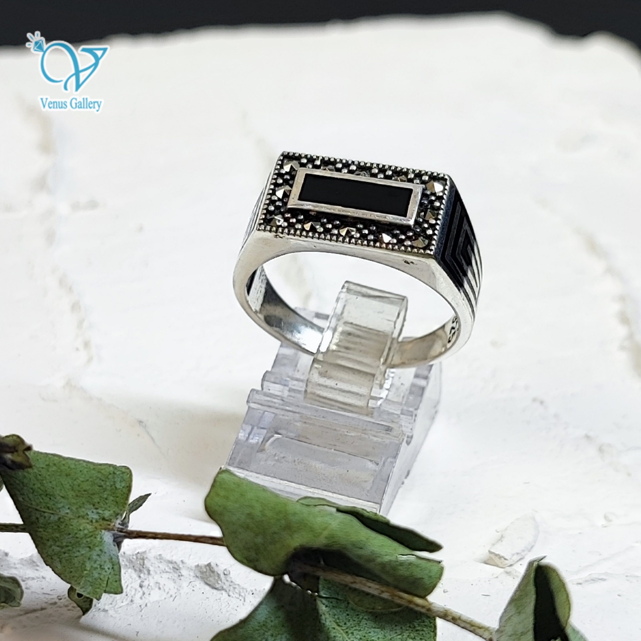 انگشتر نقره مردانه سیاه قلم رکاب کارتیه سنگ اونیکس کد6173
