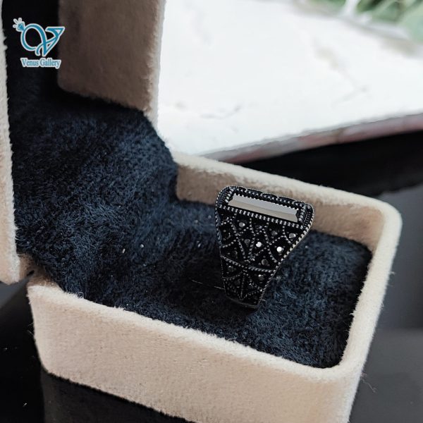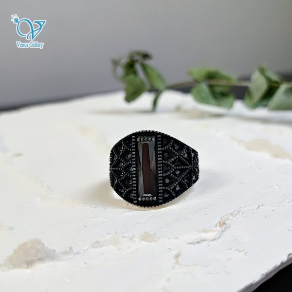 انگشتر نقره مردانه کاملا سیاه سنگ اونیکس