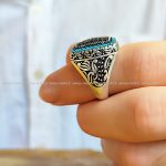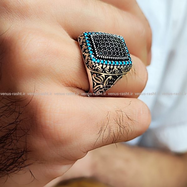 خانه زیورآلات نقره انگشتر نقره انگشتر نقره مردانه انگشتر نقره پسرانه با سنگ فیروزه صنعتی اسپرت