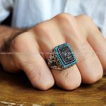 انگشتر نقره پسرانه با سنگ فیروزه صنعتی اسپرت