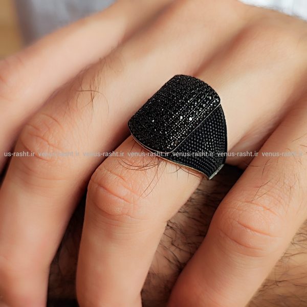 انگشتر نقره پسرانه با نگین های ریز اتمی کاملا مشکی کد 4577