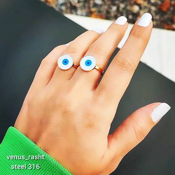 انگشتر چشم و نظر صدفی استیل رنگ طلایی