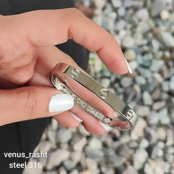 دستبند النگویی کارتیر مربعی از استیل با کیفیت ساخته شده و دوام و ماندگاری بالایی دارد.