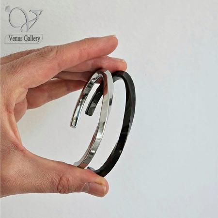 دستبند بنگل پیچ مشکی و نقره ای مردانه کد8655