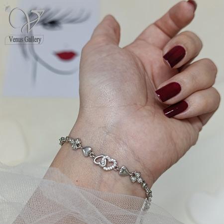 دستبند نقره دخترانه طرح جواهری مدل قلب و شبدر خوش شانسی