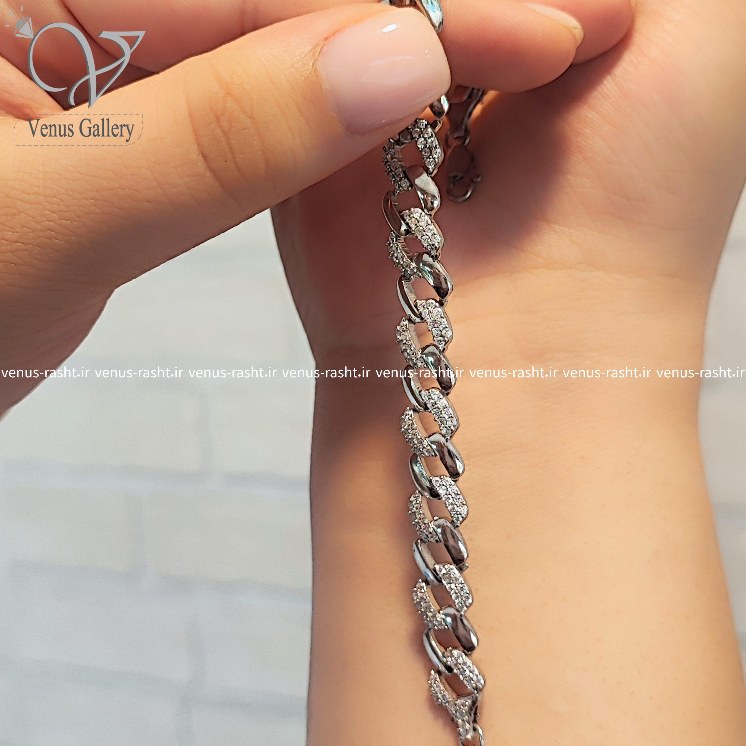 دستبند نقره دخترانه مدل کارتیه نگین دار