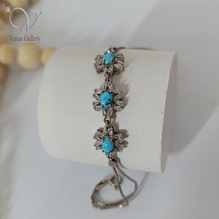 دستبند نقره زنانه سنگ فیروزه نیشابور جواهری