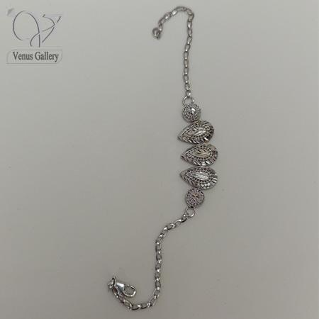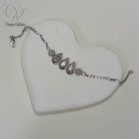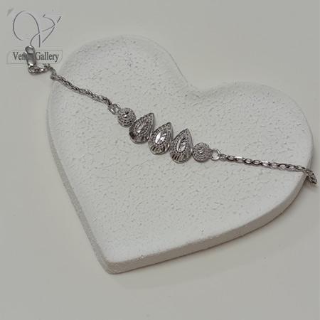 دستبند نقره زنانه مدل تراش اشکی طرح طلاسفید کد 5841