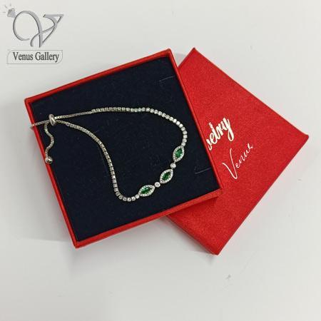 این دستبند زیبا با نگینهای اتمی کریستالی به شکل تنیسی و نگین اصلی به رنگ سبز و به صورت اشک دو سر که از نوع تراش خورده است یک انتخاب فوق العاده است.