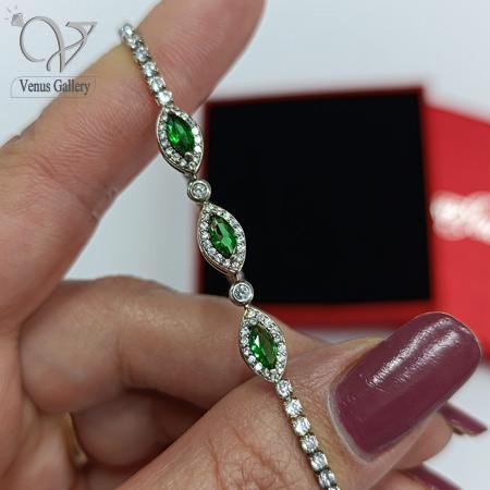 دستبند نقره زنانه نگین سنتتیک سبز بند آسانسوری مدل تنیسی طرح جواهر کد 5740